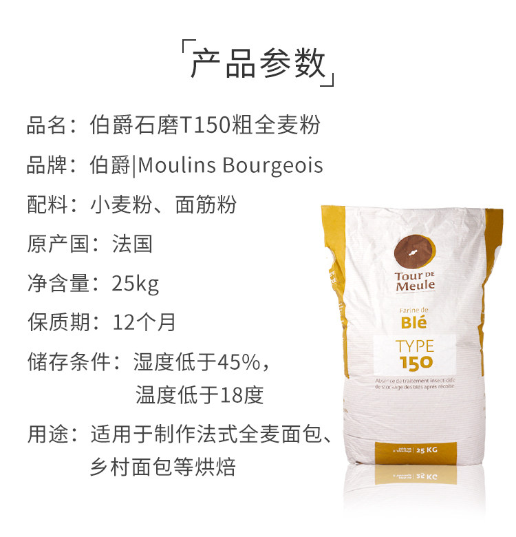 Earl T150 цельнозерновая мука грубого помола, 25 кг, французская цельнозерновая деревенская лапша, хлеб, тосты, импортированные из Франции