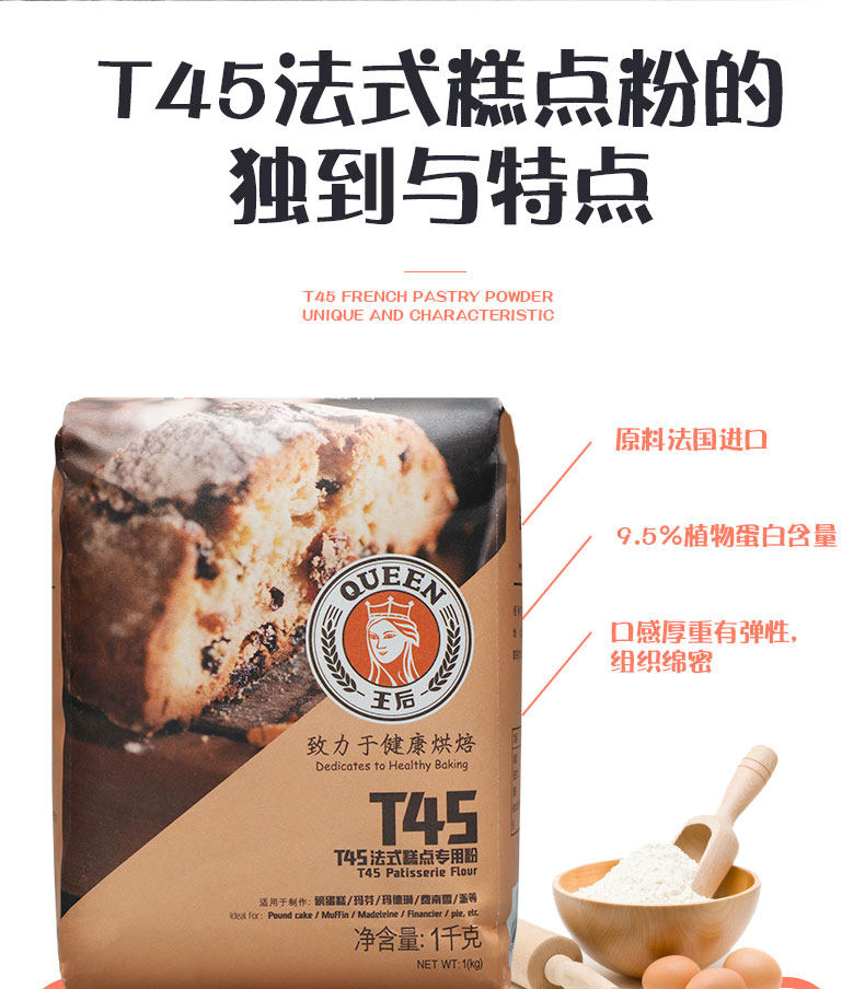 Queen Queen T45 Французская кондитерская мука 1 кг Мадрин Марин Фей Нэндсю с пирожным порошком 1000 г выпечки