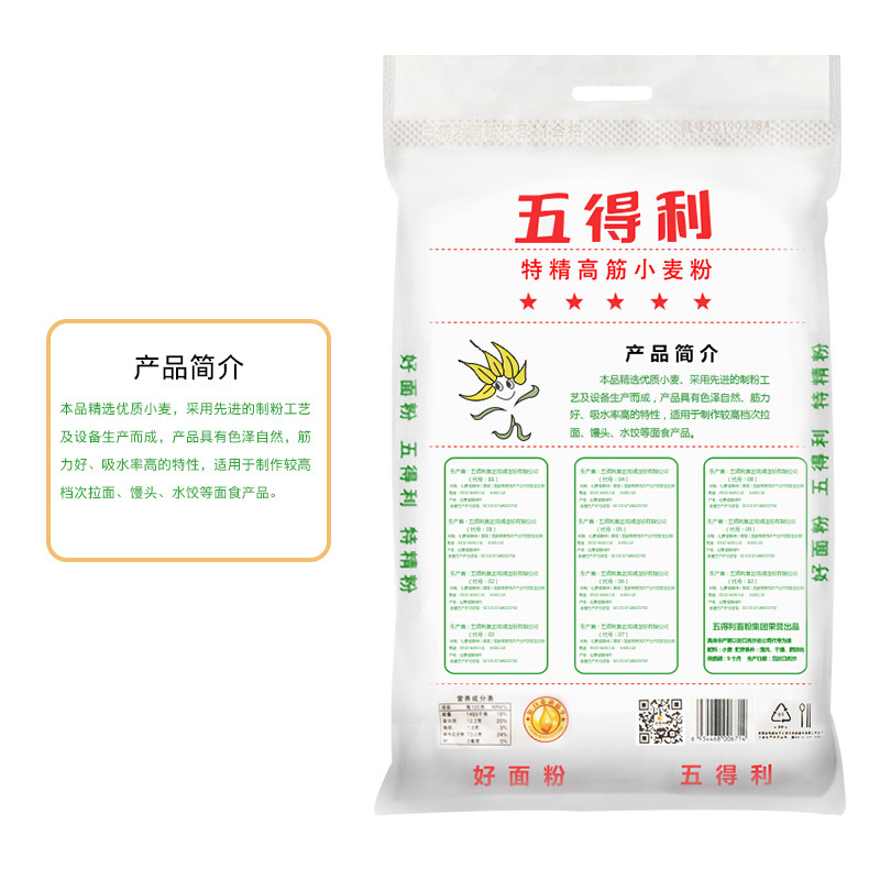五得利 Пять -Star Special Fine -Gluten Wheat Flour Mulr 5 кг муки для выпечки сырья Новая и старая упаковка случайная доставка