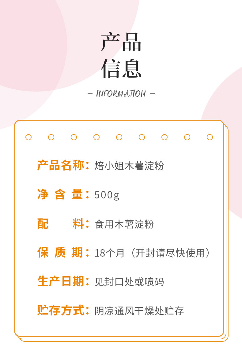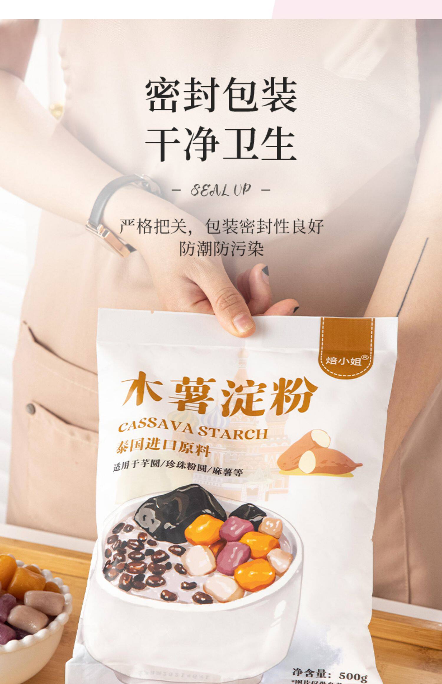 焙小姐 Тапиоковый крахмал, 500 г * 2, съедобный домашний крахмал, материал для домашней десертной выпечки для жемчужных шариков таро
