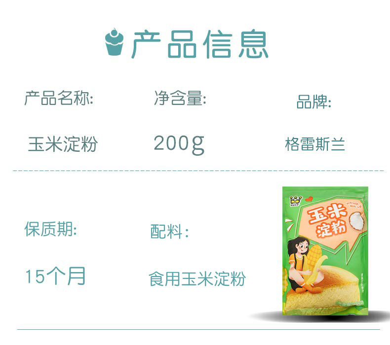 格雷斯兰 200 г кукурузного крахмального сырого порошкового крючка.