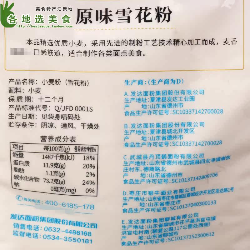 Отходы -разработанные оригинальные снежные пыльцы 2,5 кг запеченные пельмени булочки, общий порошок пшеницы с высоким содержанием глютеновой муки