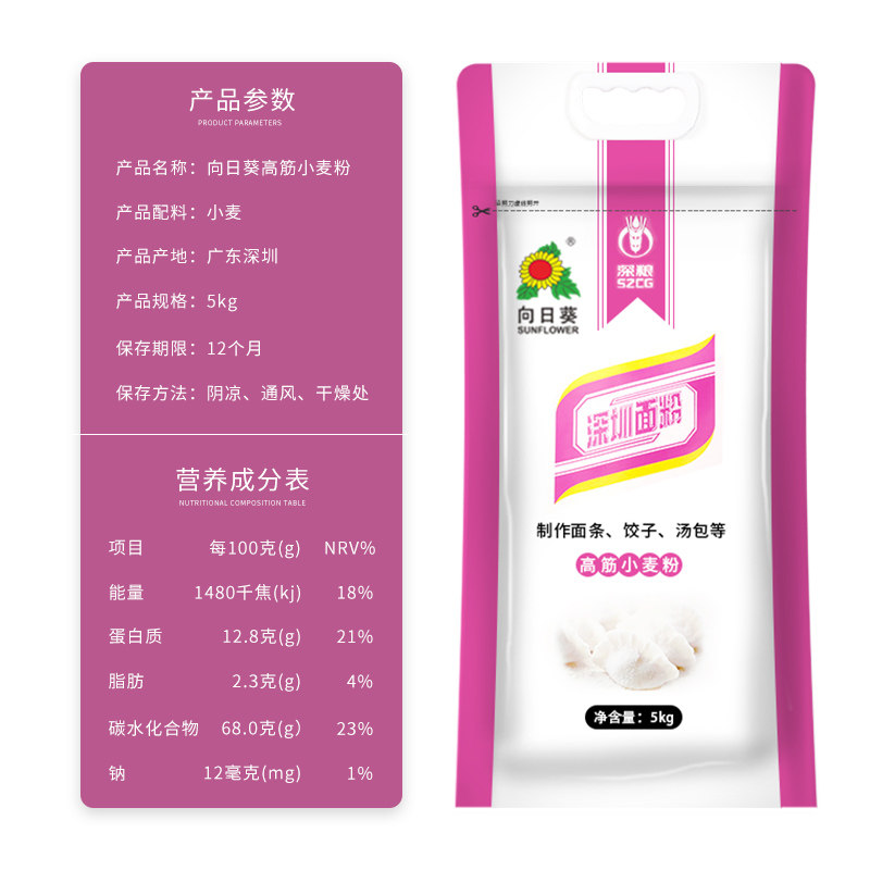Глубокий зерновой подсолнечник Shenzhen High -мука 5 кг домашняя пельмени с лапшой Специальная пшеничная мука пища