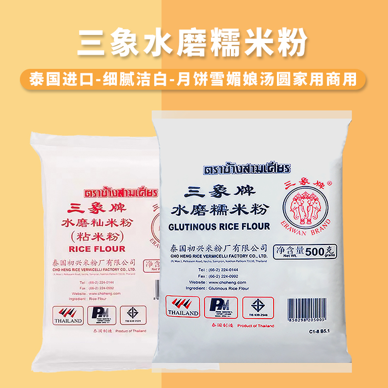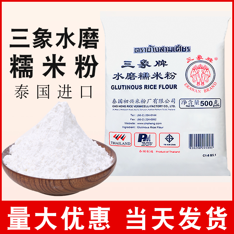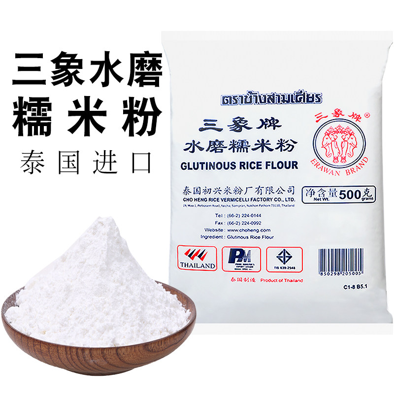 Клейкая рисовая мука Пяти лет -летняя магазин клейкая рисовая лапша липкая рисовая лапша Три слона бренда Аутентичные водяные мельницы маленькая сумка домохозяйство снежного снега Приготовленная ледяная кожа Луна торт молодежный