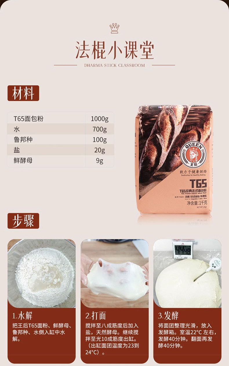 王后 T65 Классическая французская хлебная мука 1 кг багит Брио Брио Французская сумка для блюд с высокой глютеновой пшеничной мукой выпечка