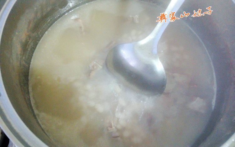 Метод: Замочите жемчужные бобы для последующего использования, и разорвать корни белого гриба, чтобы разорвать его на мелкие кусочки; все ингредиенты помещают в кастрюлю, добавьте воду на большой огонь и варят на медленном огне.