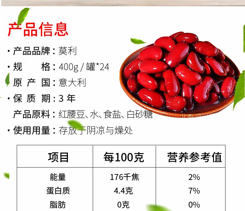 Моли красная талия фасоль 400G*24 банка/целая коробка итальянских импортированных западных пищевых продуктов.
