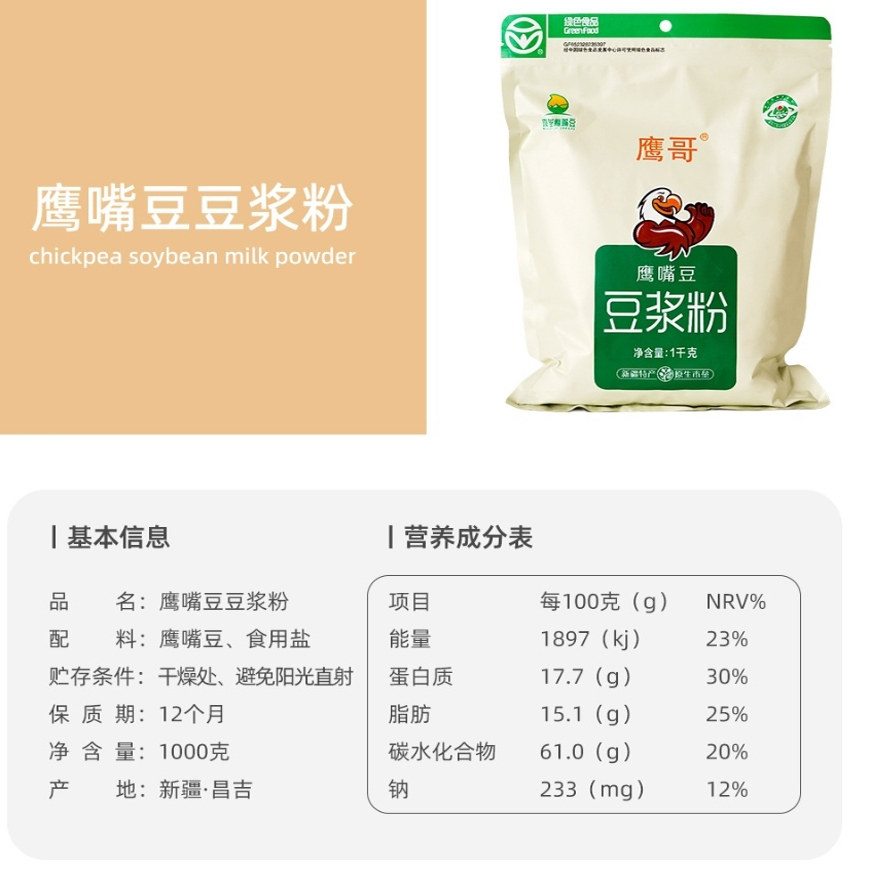 Синьцзянский порошок из приготовленных бобов нута, 1 кг, хрустящий, готовый к употреблению, готовый к употреблению порошок соевого молока, 2 кг, упакованный сезонными свежими бобами