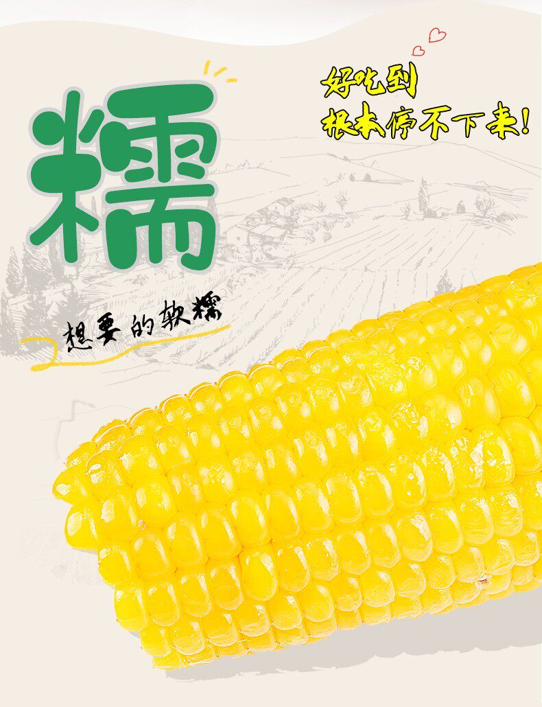 Северо -восточная вакуумная упаковка липкая кукурузная палка Желтая клейкая бутона рис теперь выбирает свежие сладкие кукурузные зерна