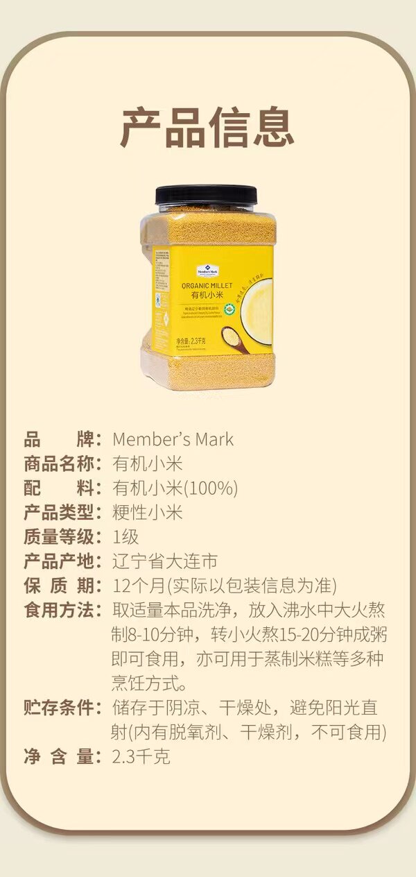 Клуб Сэма закупает цельнозерновую кашу из органического желтого проса, 2,3 кг, послеродовую кашу из рисового проса для детей, клейкую