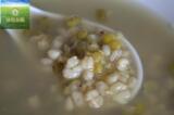 2. Добавьте соответствующее количество воды в кипение в кастрюлю, добавьте ядра семян коатика, бобы мунг и ядра пшеницы, а затем поверните на средний огонь и варите полчаса.