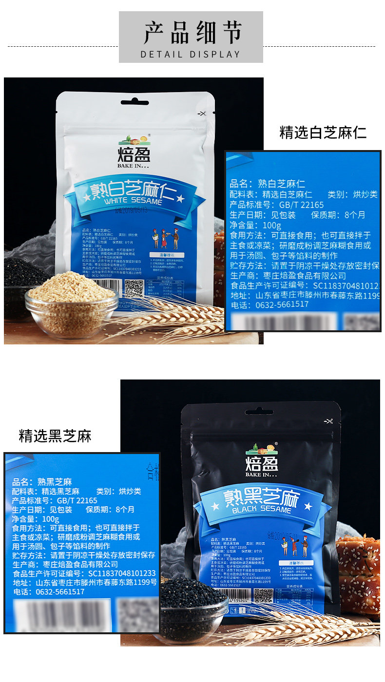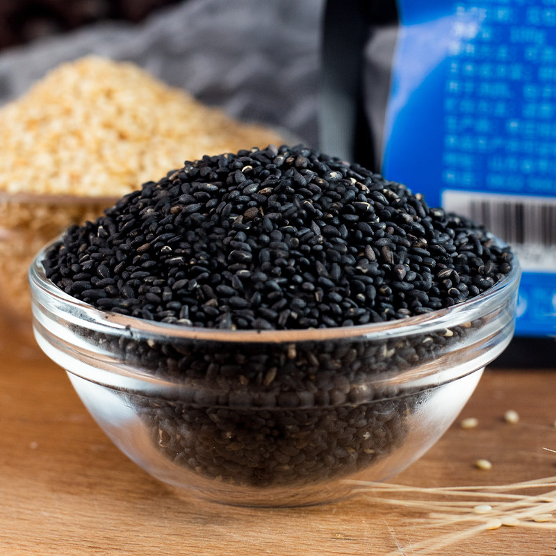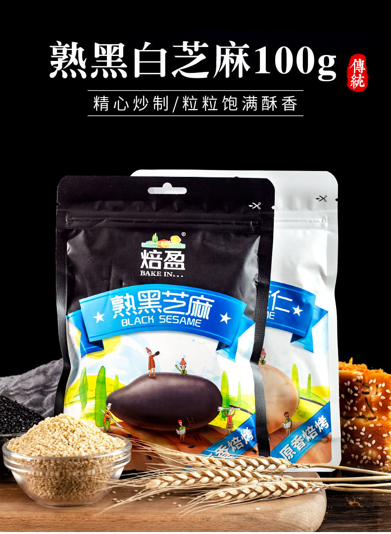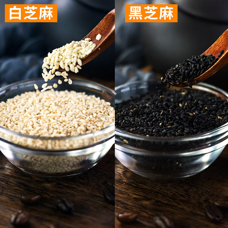 Приготовленный белый кунжут, ингредиенты, приготовленный черный кунжут, вареные черные таблетки с кунжутом, маленькая упаковочная яичная желточная газет