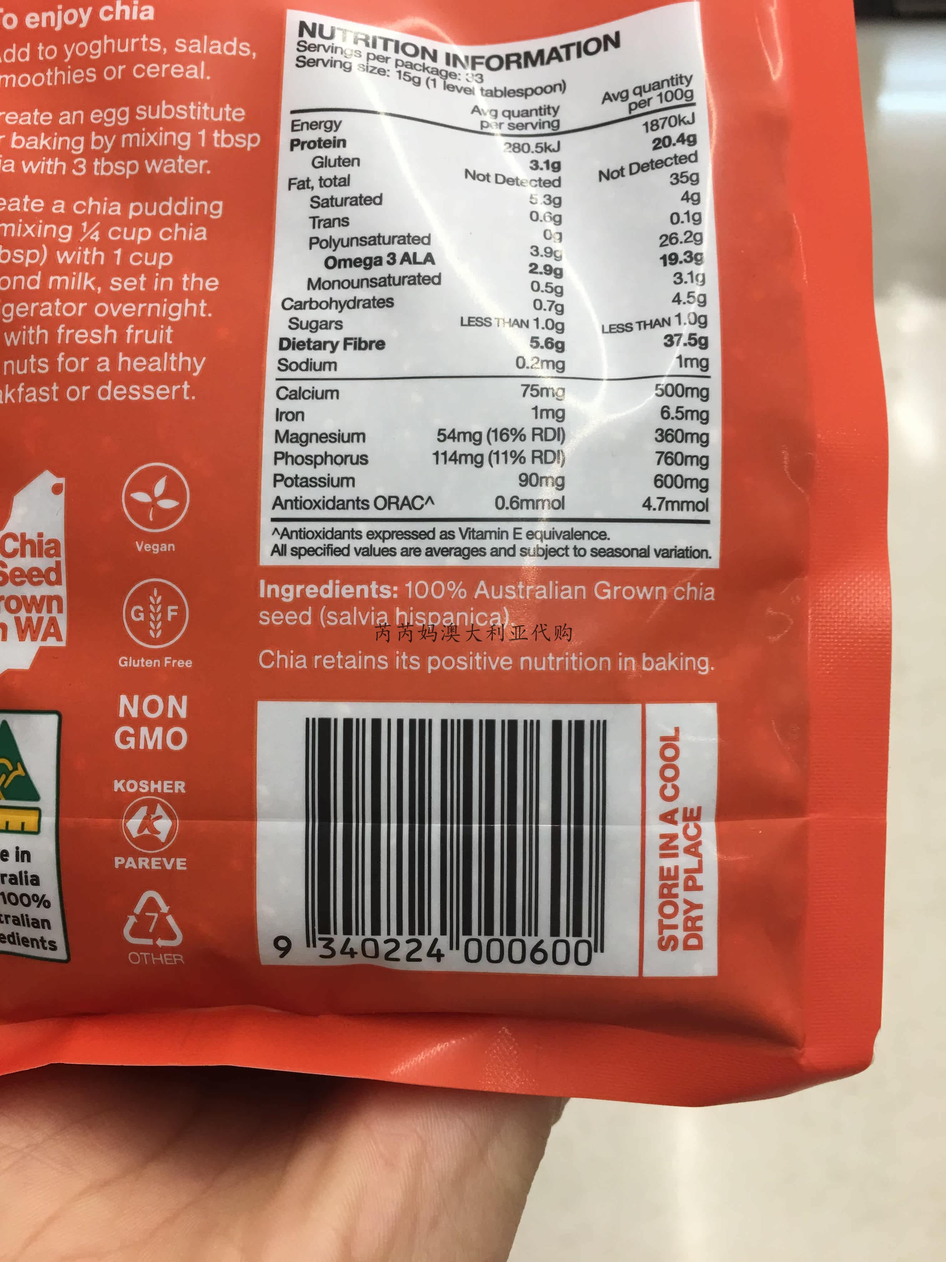 Австралийская покупка австралийца GROGN The Chia Co Black Chia Black Chia Seed