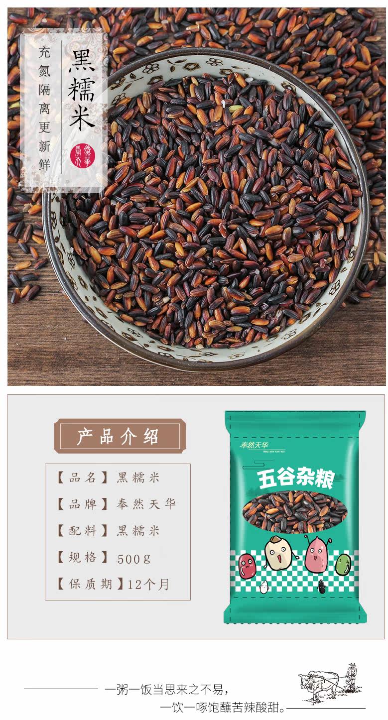 Кроваво -кровавый рис, новый рис Северо -восточный черный клейкий рисовый зерно Разное зерно, фермеры производили фиолетовый клейкий рис кара Черный рис клейкий рис 500G
