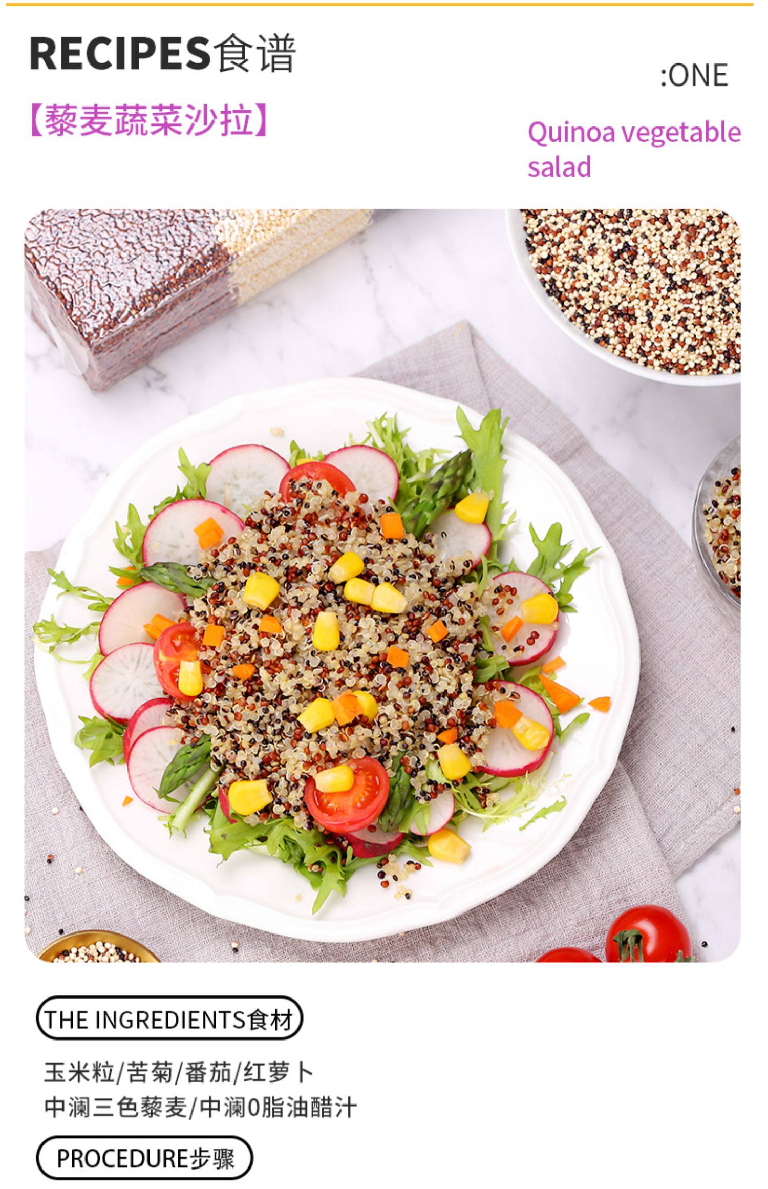 中澜 Трехноколорные квиноа 3 кота из смешанного квиноа рис белый черный красный зерна и зерна, грубые зерна, детское питание Дополнительная вакуумная упаковка пищи.