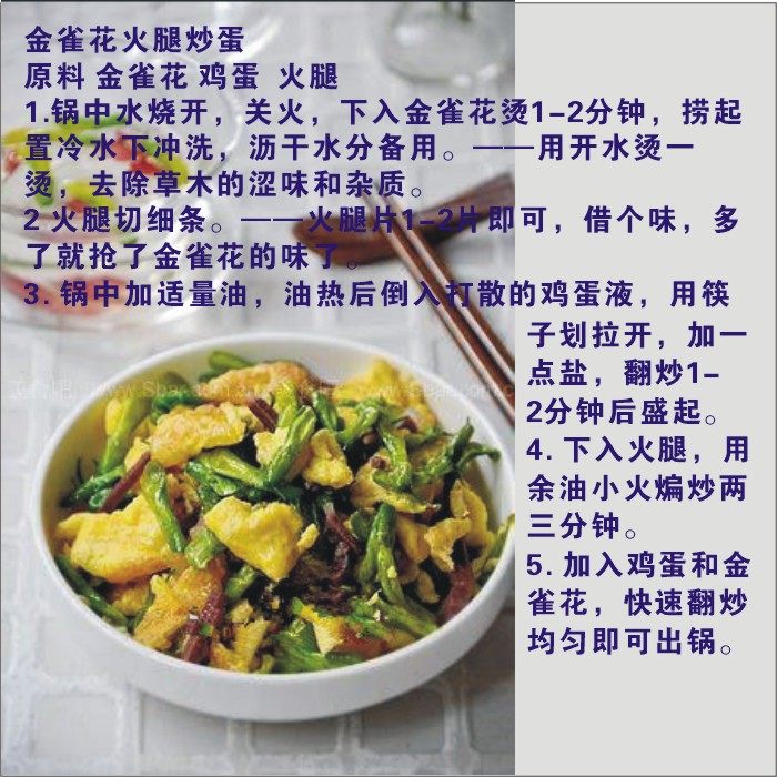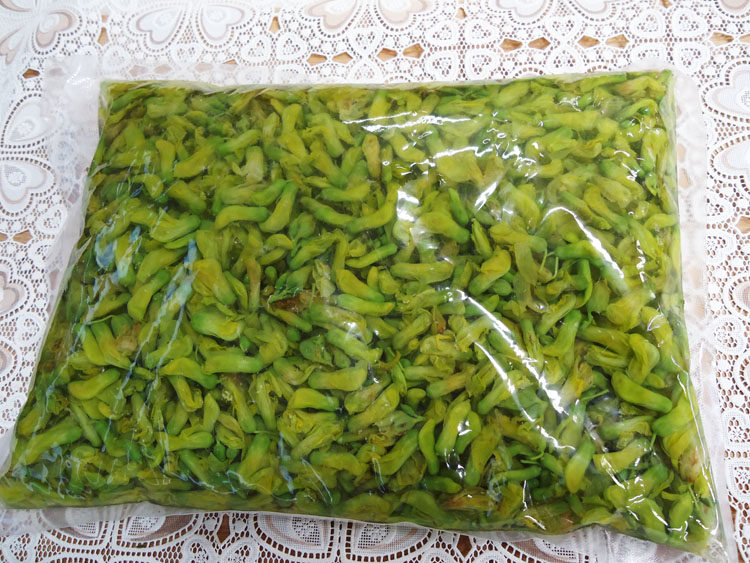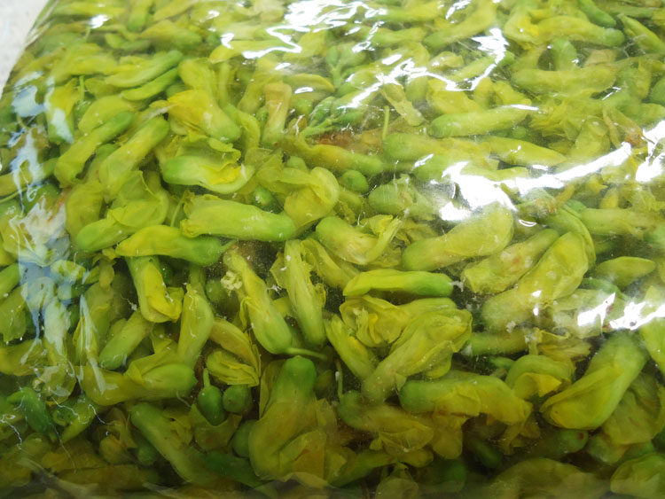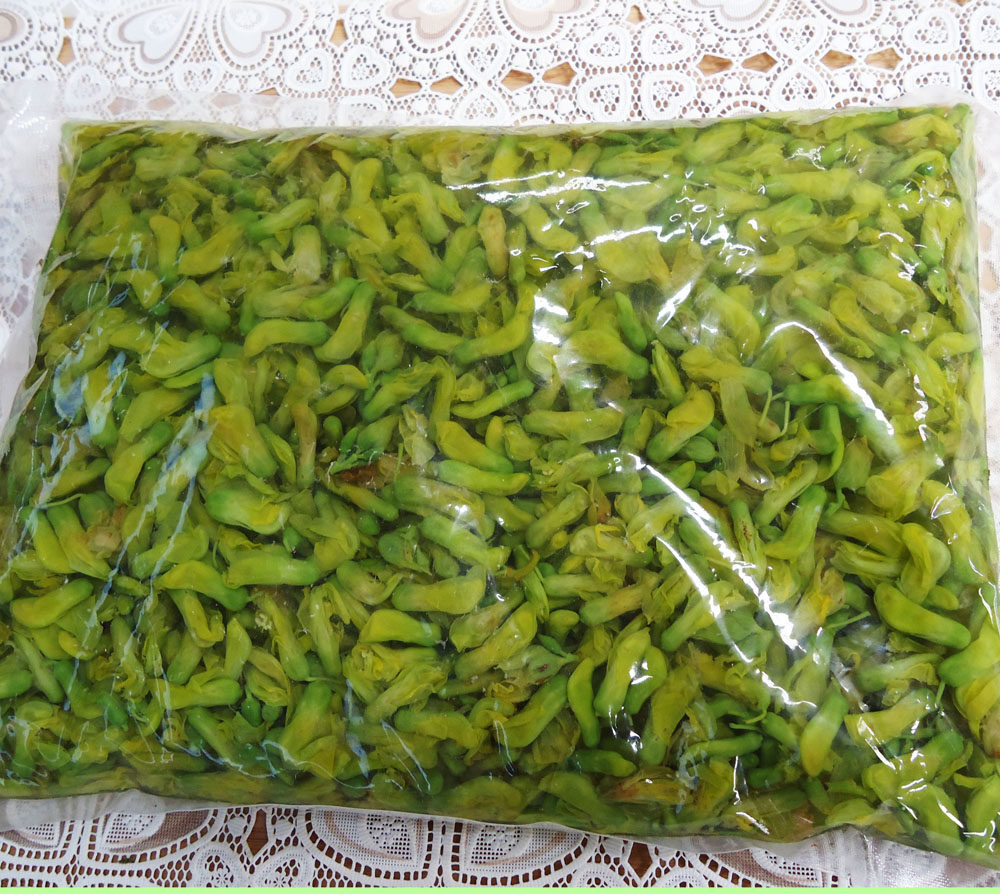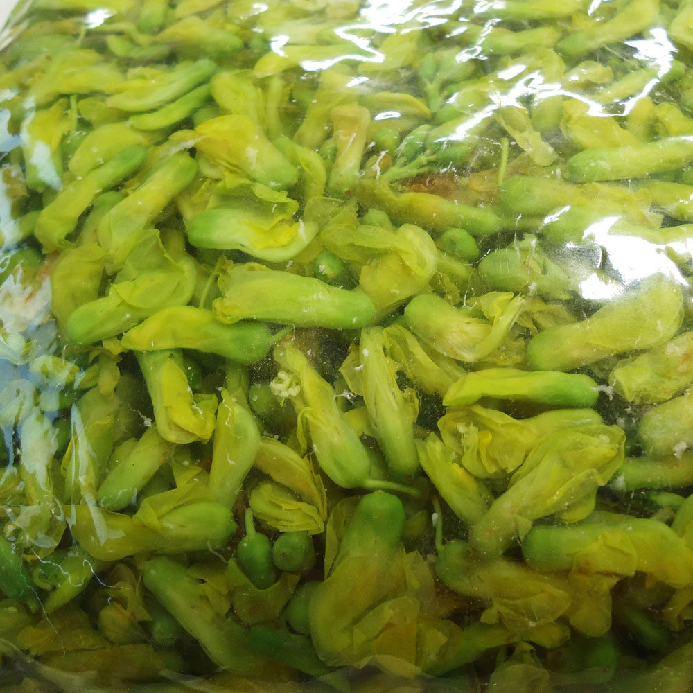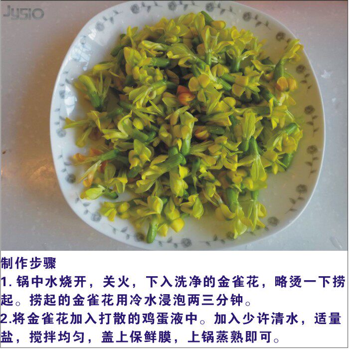 1. Бланшируйте цветки дрока в кипящей воде, а затем промойте их холодной водой, чтобы удалить горький вкус и сохранить аромат;