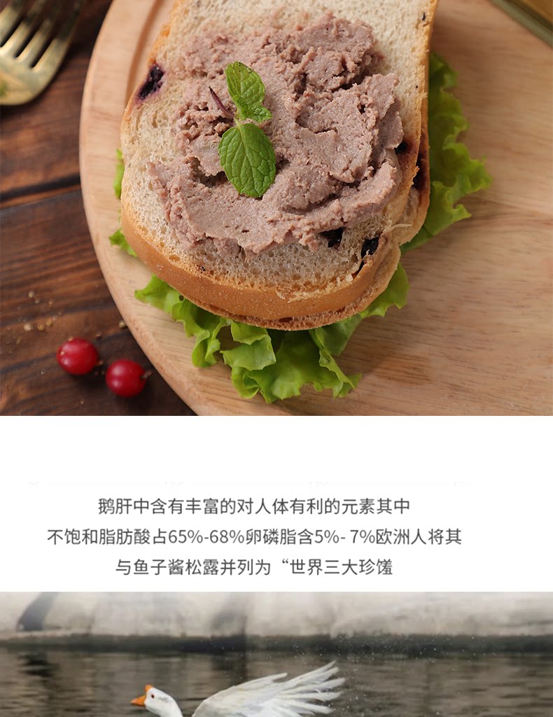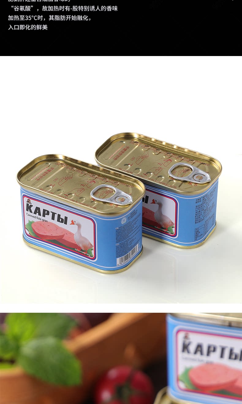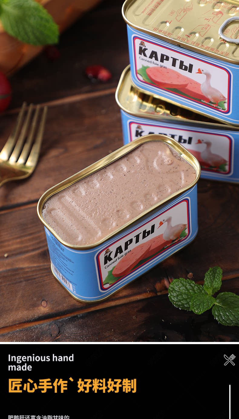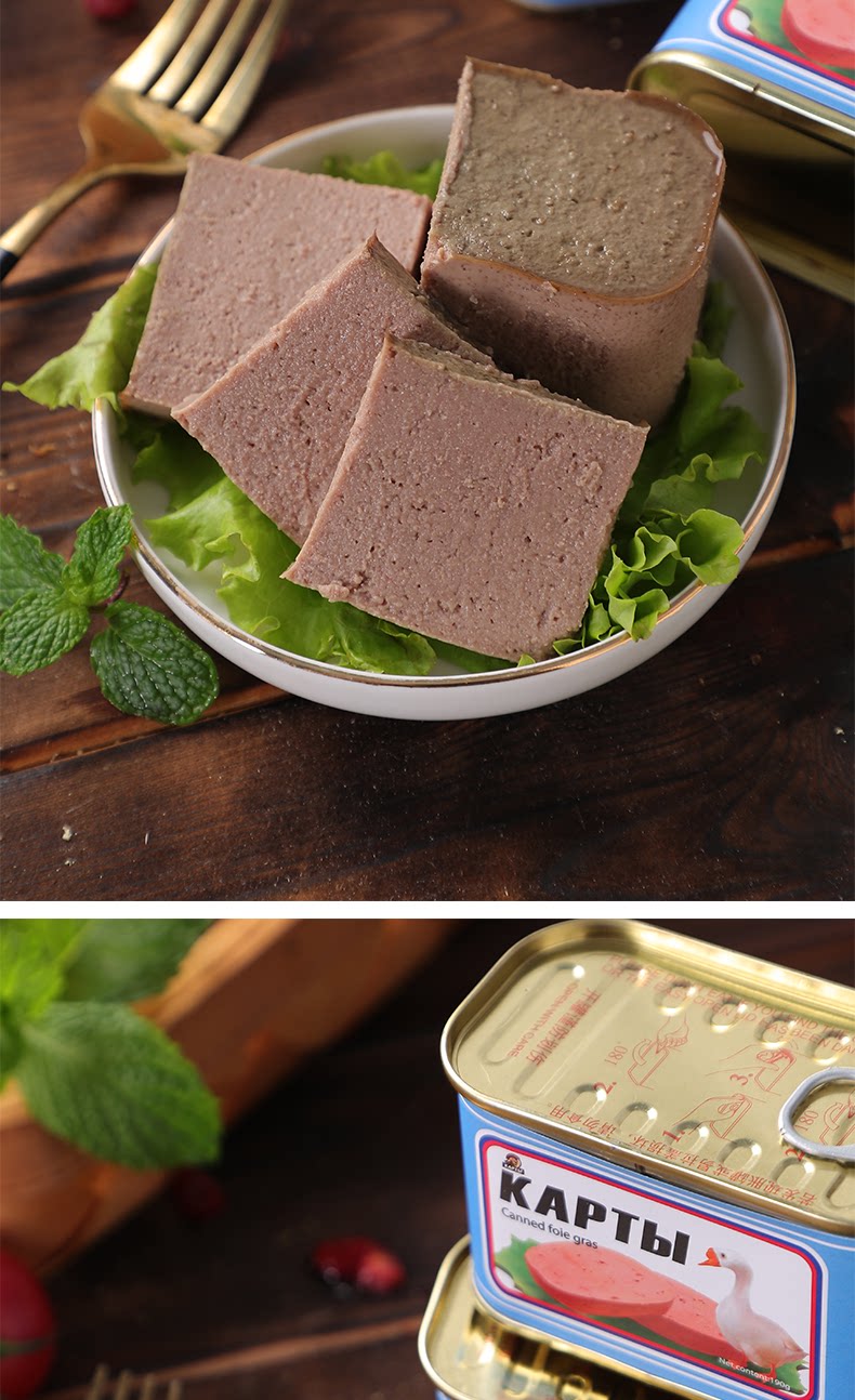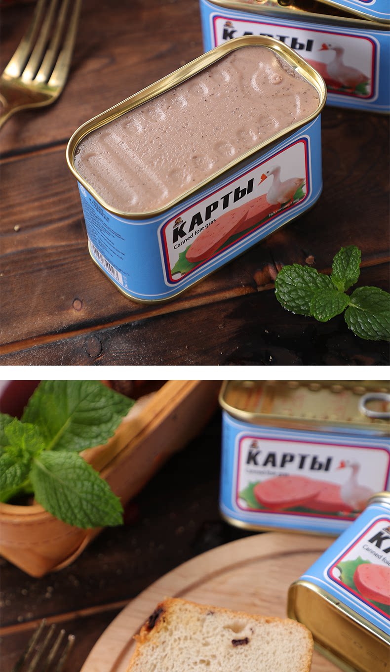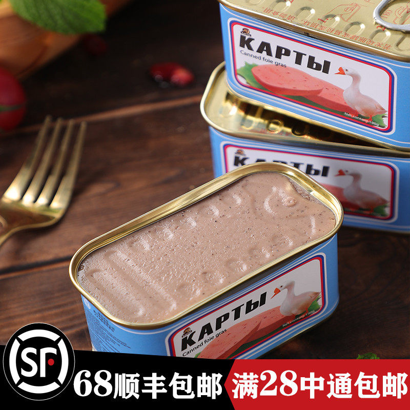 Российский вкус гусиного печени с добавлением западной пищи, хлебного соуса с овощами и овощами, овощами, фуа -гра, печени, 190G