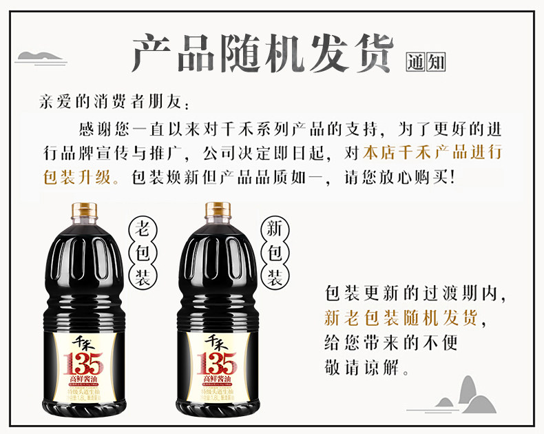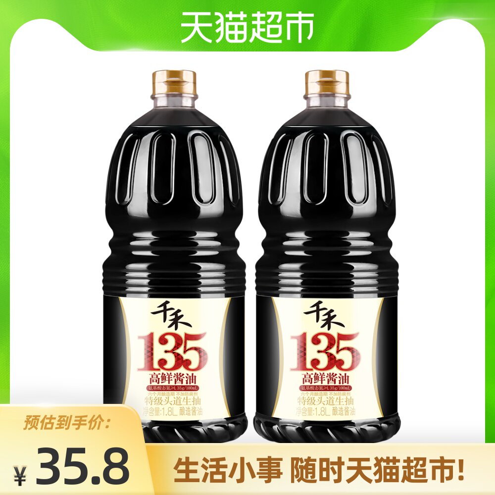 千禾 Кухня приправлена высокая 135 Специальный соевый соус 1,8 л*2 холодные