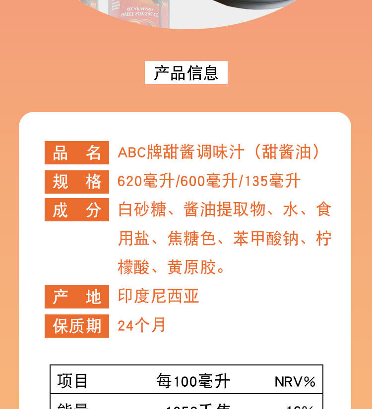 Индонезийский сладкий соевый соус Импортированное бренд ABC Сладкий соус Соус Соус Соус Сладкий соевый соус кухонный приправа жареный рис жареный рис