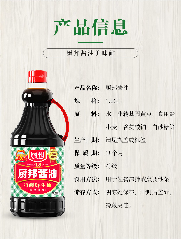 厨邦 Соевый соус 1.63L Специальный свежий соус соевый соус соевый соус жареный жар -хранение хранение палочки с погружением мебель для дома рекламный