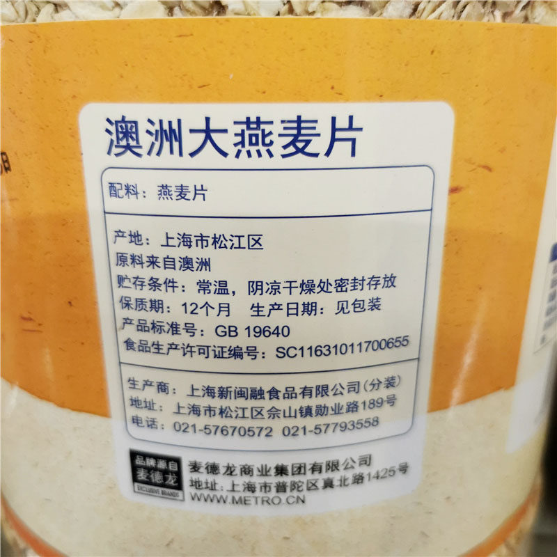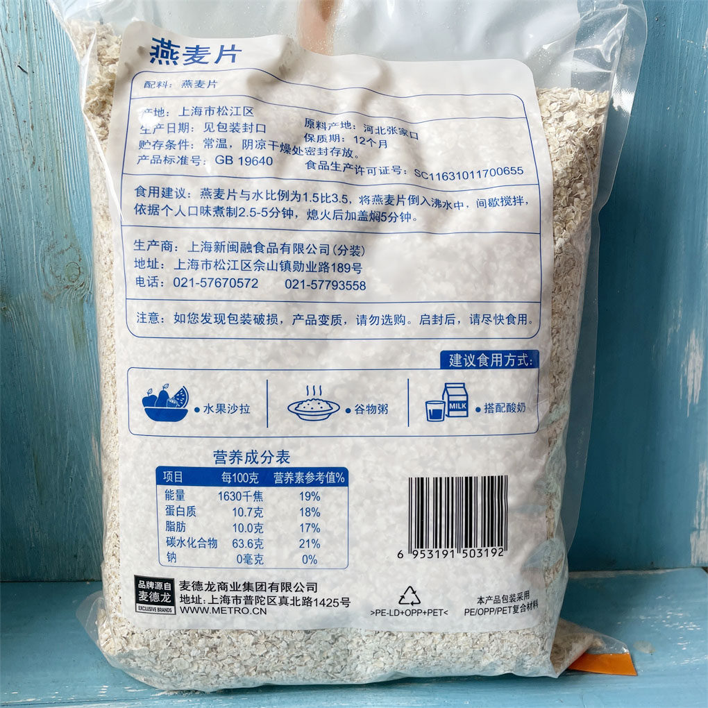 Metro приобрела yike oatmeal 2,5 кг семейства быстро кипения кара для завтрака