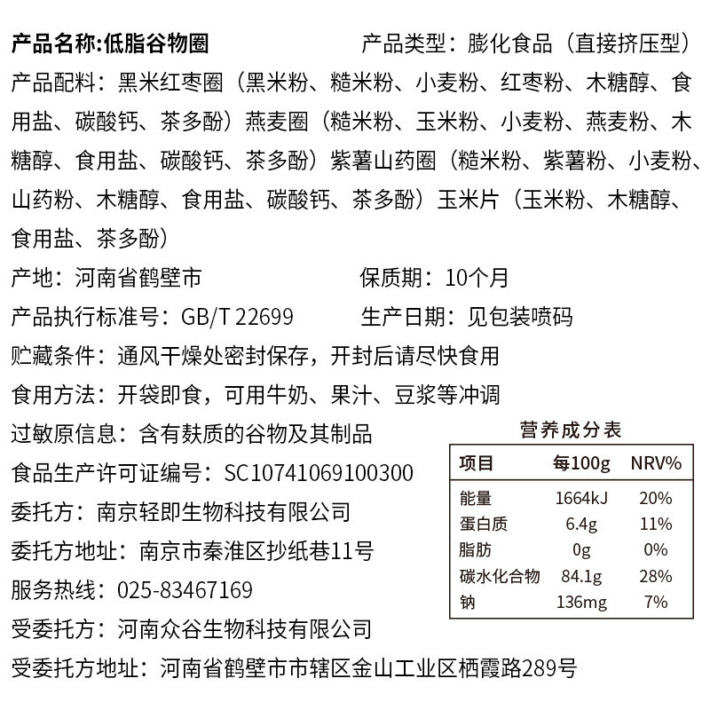 轻即 Зерновые овсяные круга низкий 0 не -сугар, без жирных калорий, завтрак завтрак молоко, хрустящий плетенный какао, медовый мяч, медовый шарик