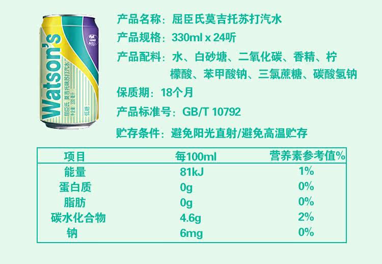 Watsons Mogiti Soda 330 мл*24 банки с полной коробкой Установка газированной газировка