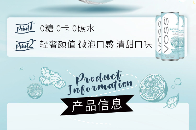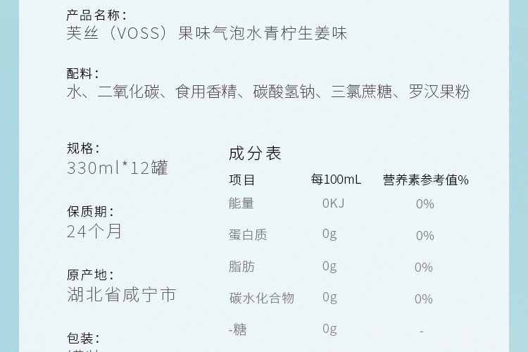 Восс (Восс) Лайм -имбирные фрукты вода ароматизированная вода 0 сахар 0 кэш 0 углеводы Целая коробка