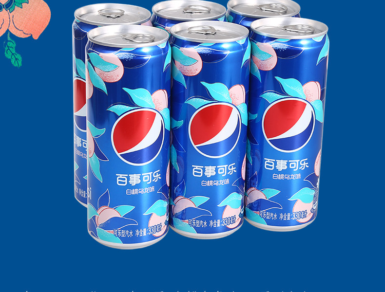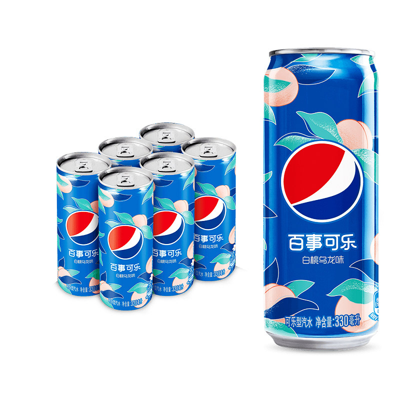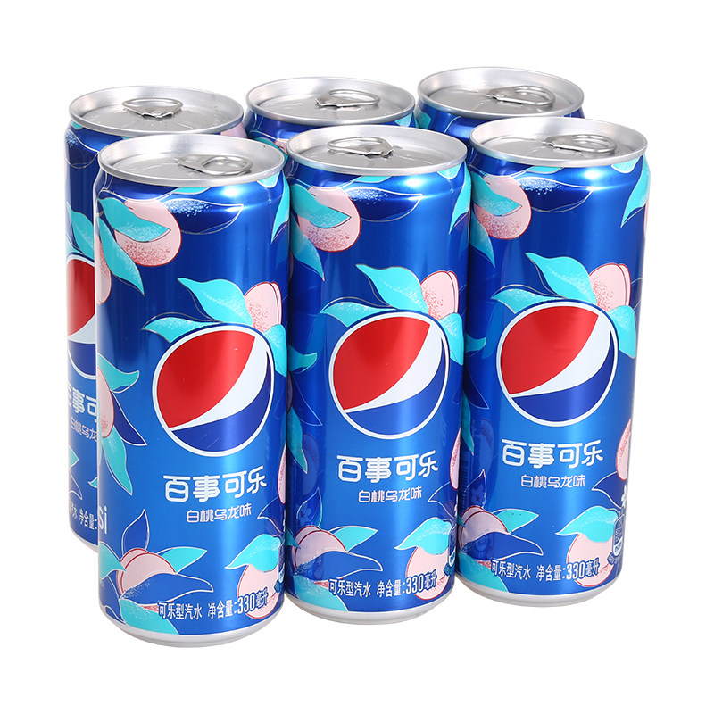 百事可乐 Белые персики улун вкусовые банки, газированные напитки и газированная газировка 330 мл*6 банок новых продуктов из напитков Tae -Soo
