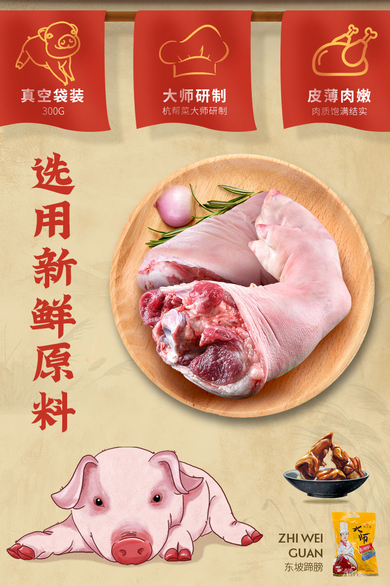 Полное сокращение [Zhiwei Guan Dongpo Hoof 300 грамм] Hangzhou Specialty Trotters свиная