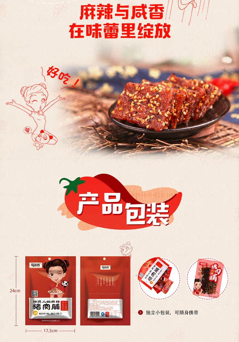 3 мешки из бесплатной доставки Sichuan Specialty Shudao Свиная свинина, пряная свиная chori повседневная закуска 100 г Грамовая сумка