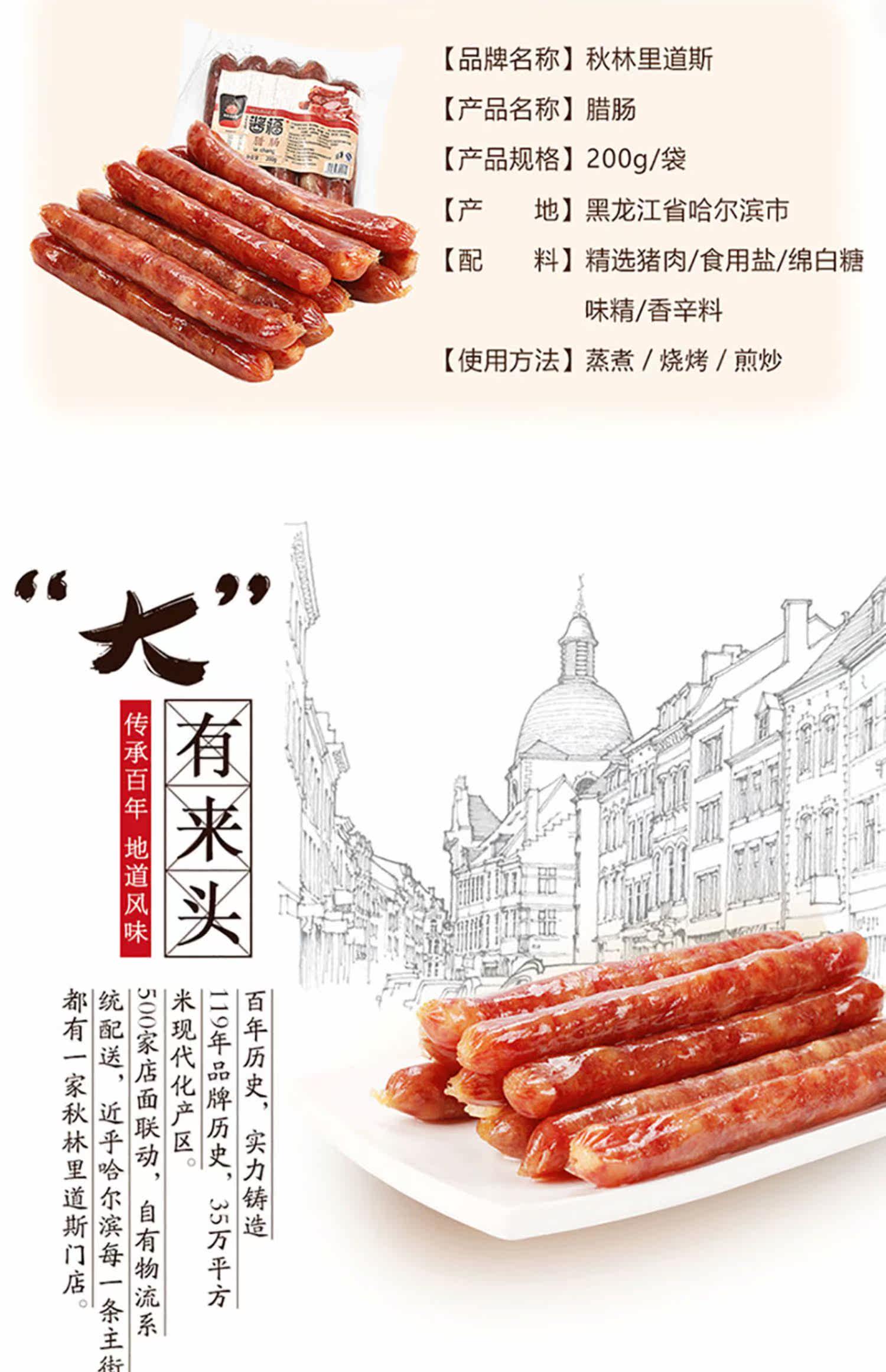 Qiulin Lao Siharbin Специальные закуски северо -восточная колбаса 200 г/сумка джиу со вкусом мясогородка