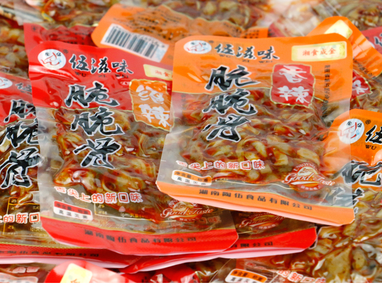 Wu на вкус хрустящая кость Hunan Delicious Meat Cored Food 500G пряная свиная хрустящая кость острые острые закуски