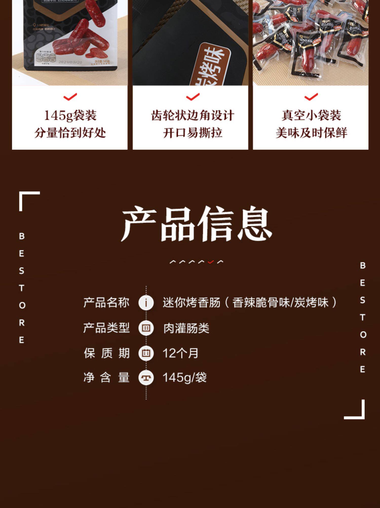 Liangpin Shop Mini на гриле колбаса 145GX2 Сумка мгновенные хот -доги маленькие финики мяса, маленькая колбаса закуски закуски