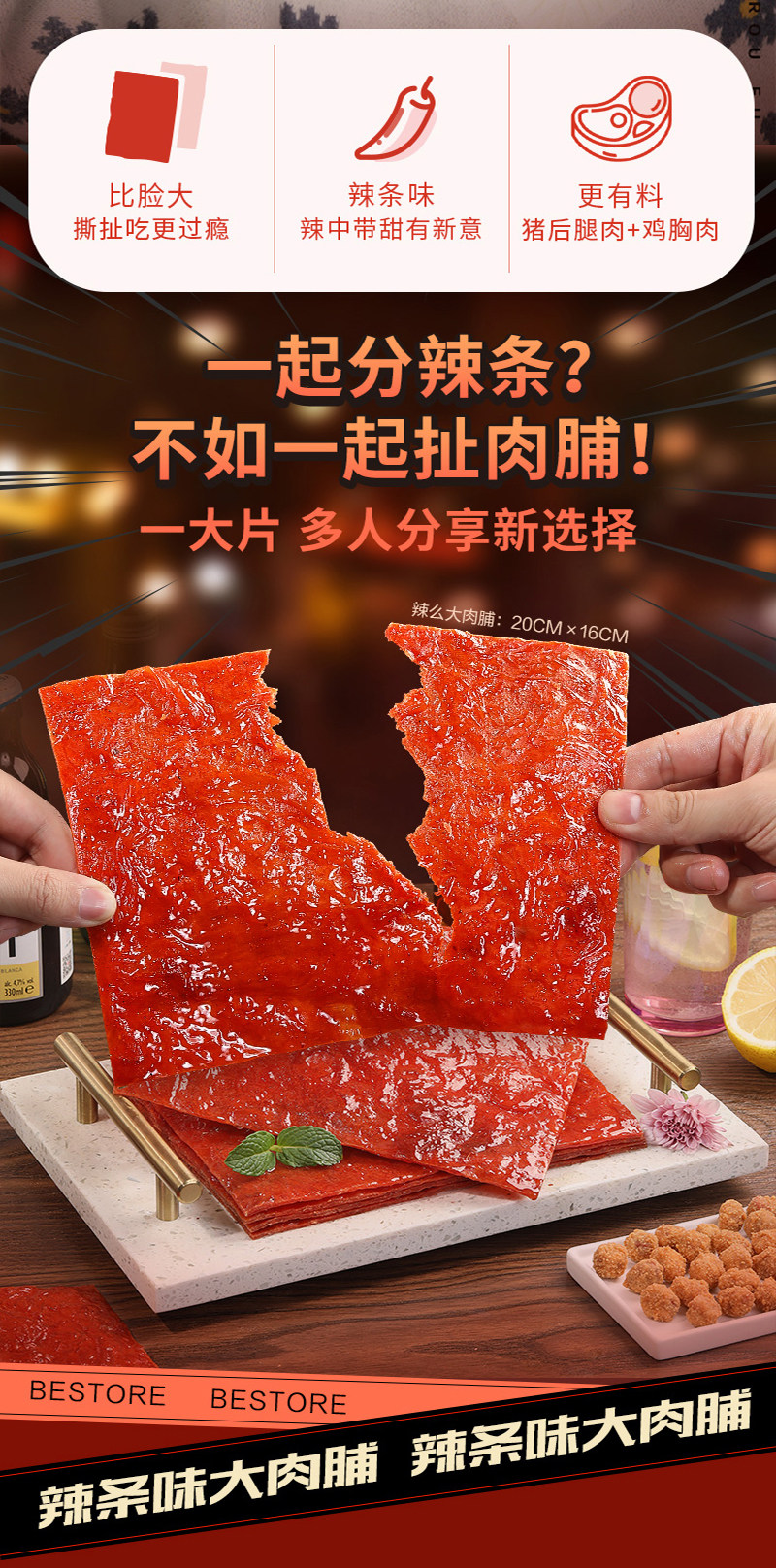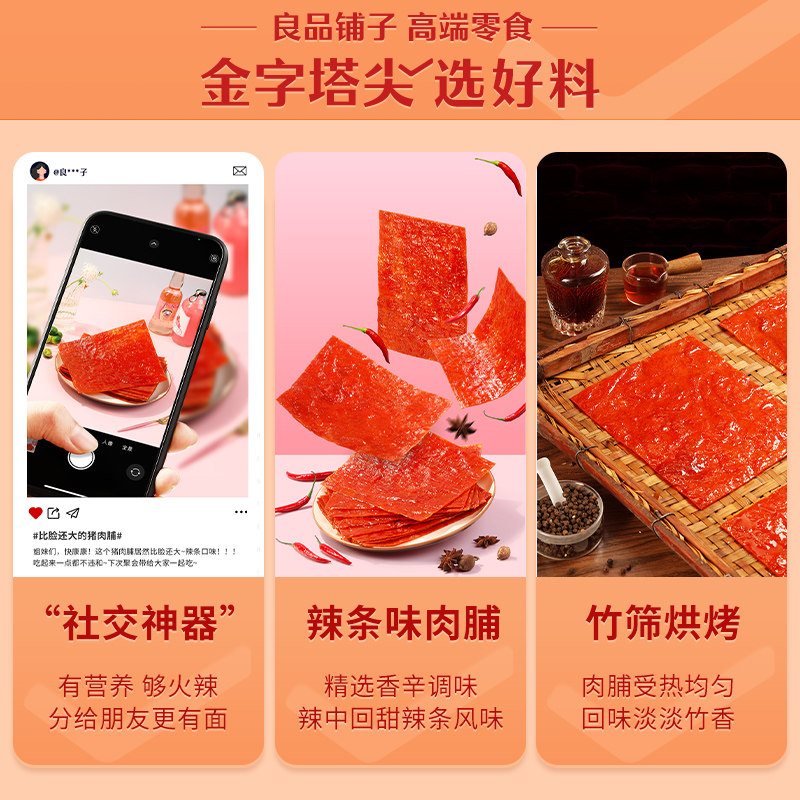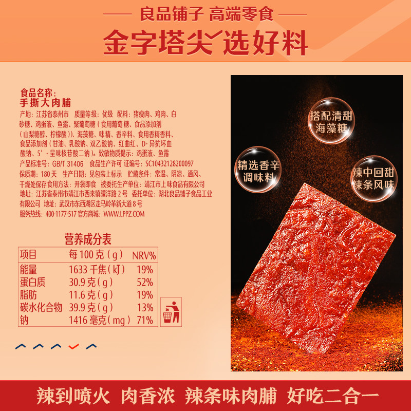 良品铺子 Рука, чтобы разорвать большое мясо 55G & Times; 3 пакета сетки красных нечистых закусок и повседневных продуктов и повседневных продуктов