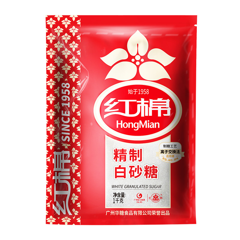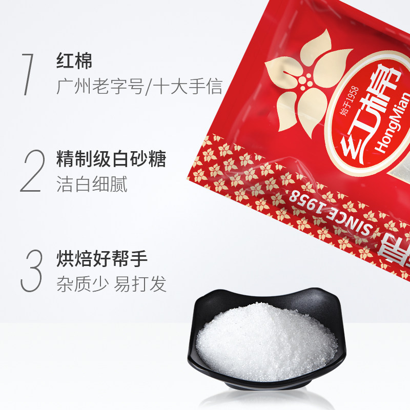 Красный хлопок с рафинированным гранулированным сахарным приправом 1000 г*1 мешок запеченного молодого сахар сахар сахар