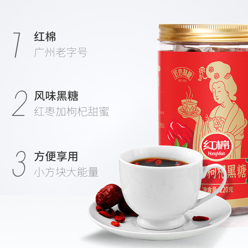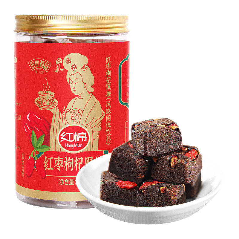 Красные хлопковые красные даты, черный сахарный блок Wolfberry 220G*1 банка тетушки, условный коричневый сахарный цвет лица