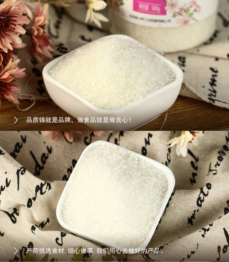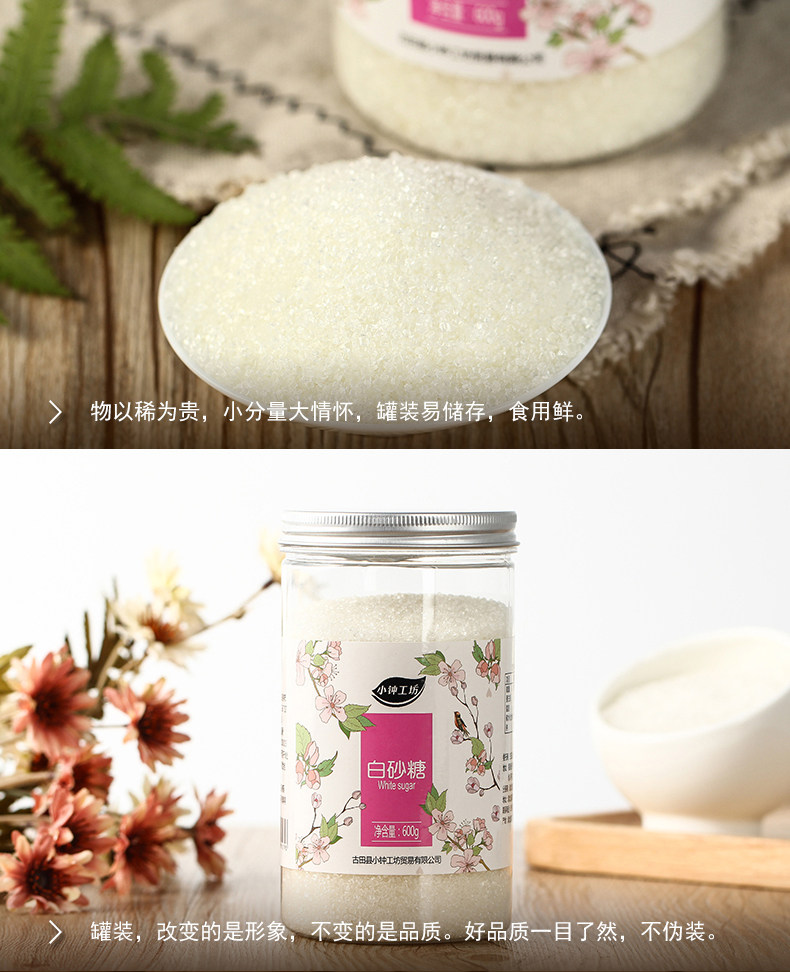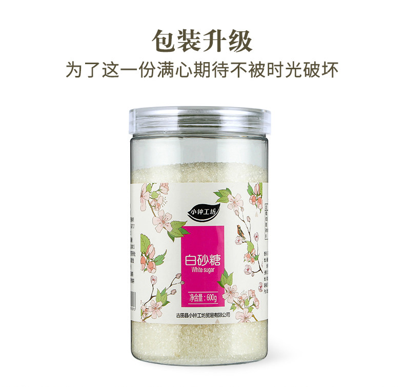 小钟工坊 Белый гранулированный сахар 600 г*2 банки сахарозы сахарозы мелкий сахар жареный сахарная вода из губки белого сахара приправы