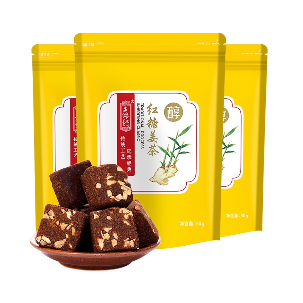 Бесплатная доставка Wang Jinji ручной имбирной имбирной имбирной имбирной имбирный сахарный блок 50G*3 упаковки в сочетании с чаем из коричневого сахара с коричневым сахаром имбиря