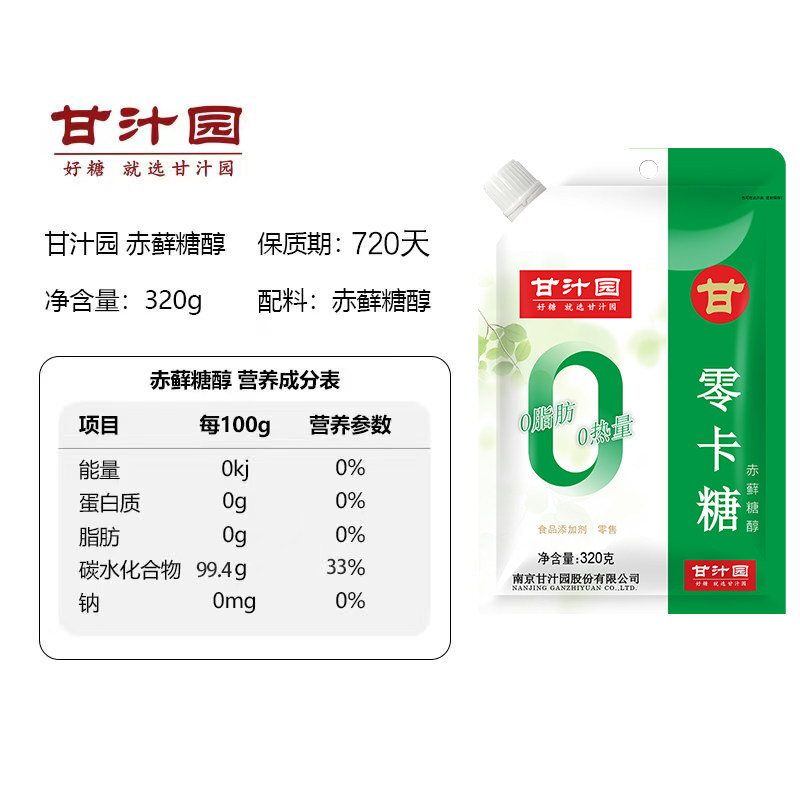 甘汁园 Erythritol 320G*5 пакетов 0 карта сахар 0 Калорийный сахар лучше, чем ксилитол белый сахар сахар