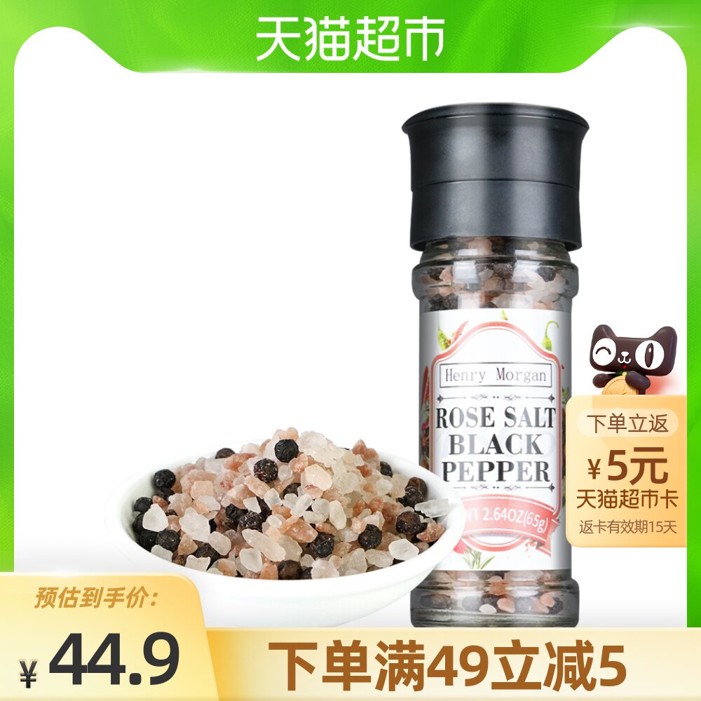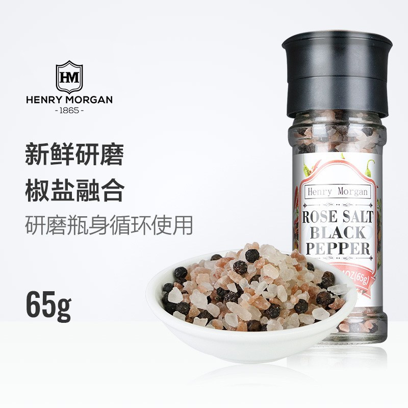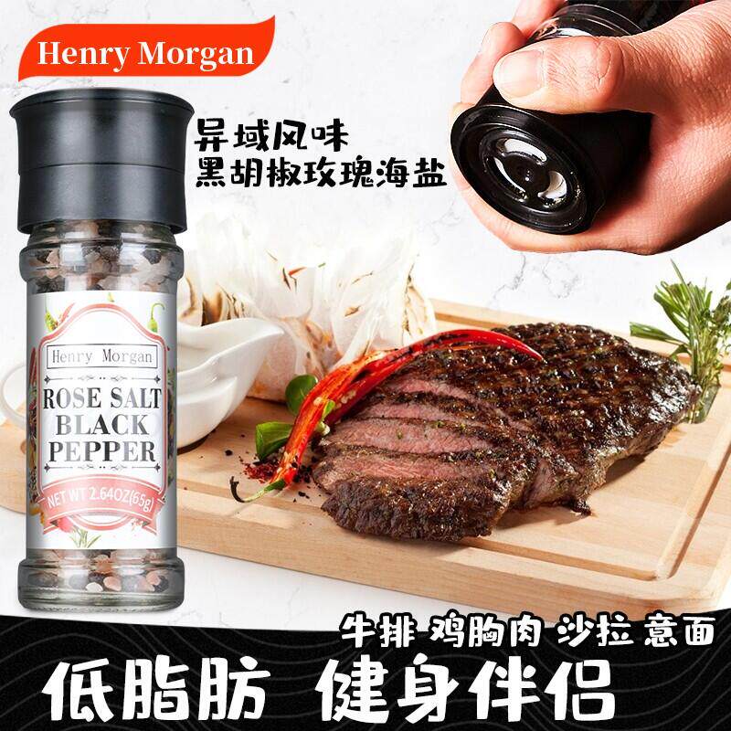 Генри Морган импортировал черный перец соль розовой соль 60G Западный стейк для скота приправы для шлифовальной шлифовальной бутылки из соли Permaara