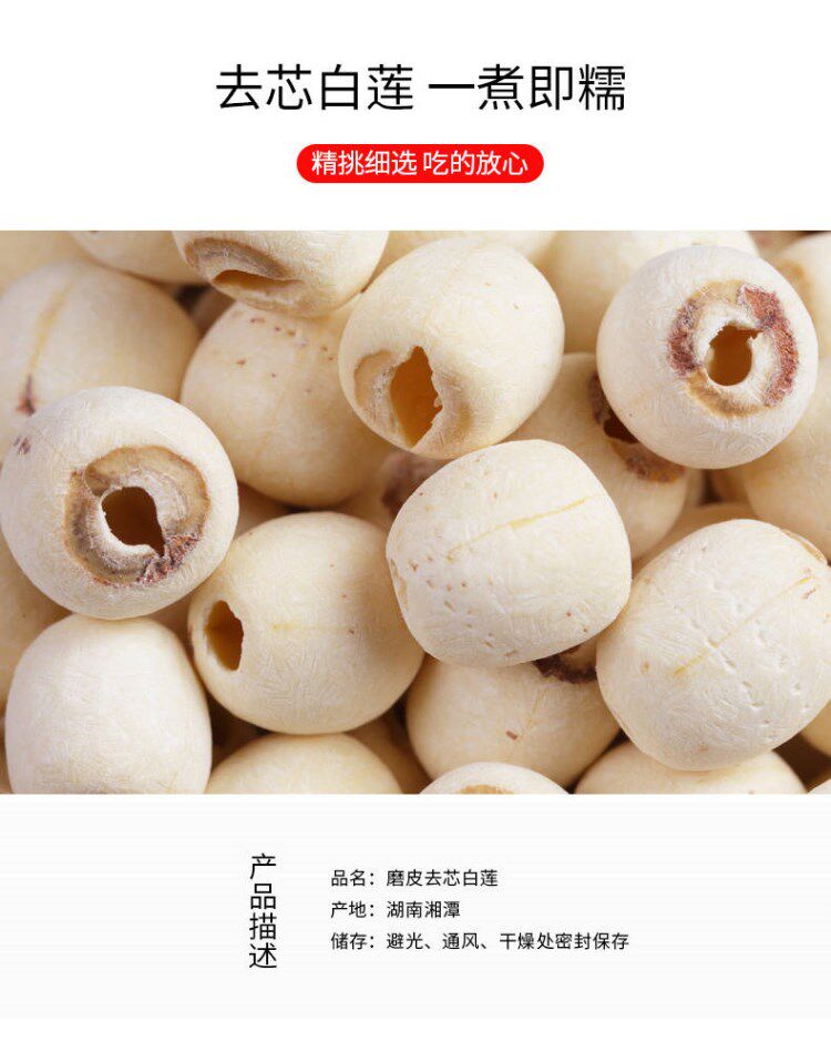 Дикая шлифовальная кожа белые семена лотоса сухой 500 г, ядра белой лотосовой лили, Специализированные Семена Сянглиана Хунань