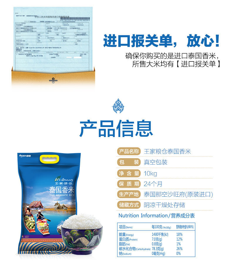 Wangjia Grain Club 10 кг/20 фунтов Таиланда Импортировал жасмин рис оригинальный рис Tammy по всей стране Бесплатная доставка