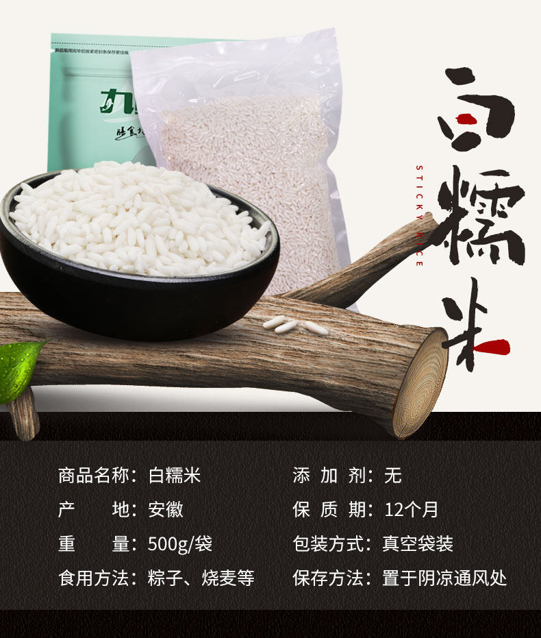 500 г белого клейкого риса 500G*3 мешки с новыми рисовыми реками рисовые фермеры. Зерно зерно белый клейкий рисовый клейкий клейкий рис рис Japonica рис