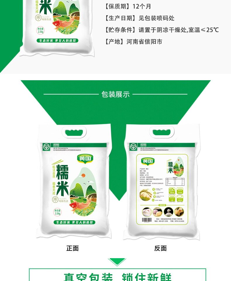 Хуан Гу зерновой индустрии клейкий рис 5 фунтов клейкого риса дома содержит вакуумную упаковочную сумку рис 2,5 кг