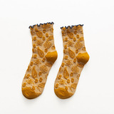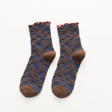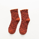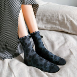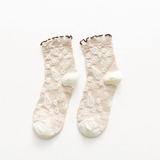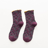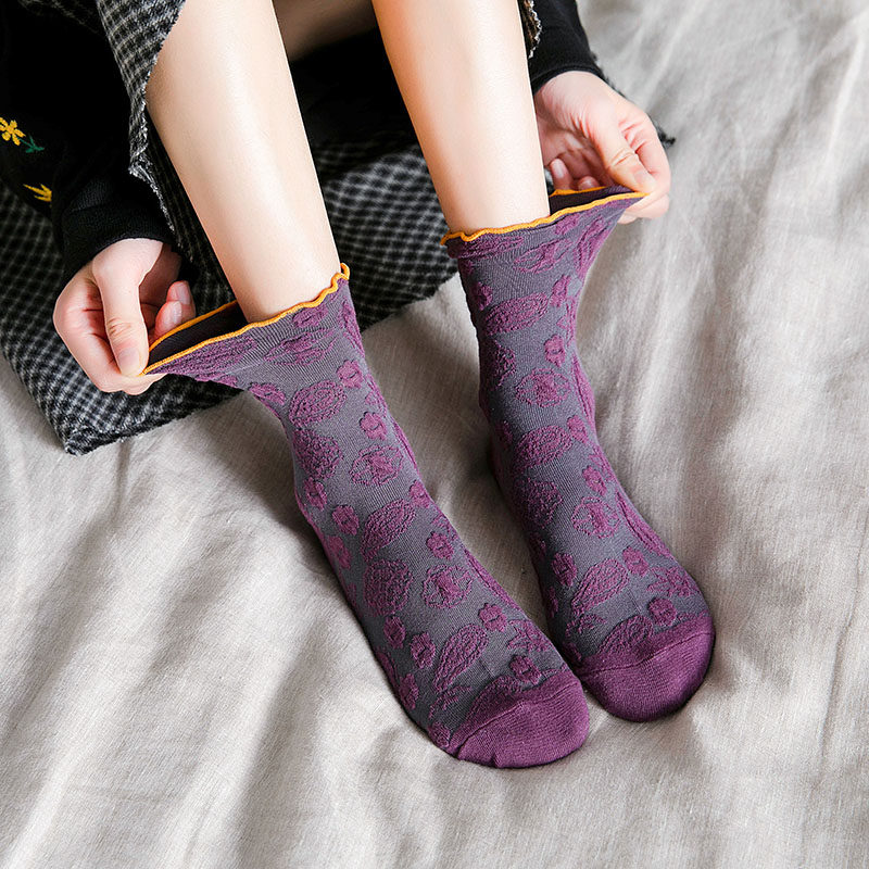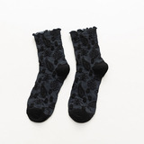 2 пары весенне-осенних кружевных женских носков средней длины с темным узором и цветочным кружевом, универсальный и удобный материал из чистого хлопка
