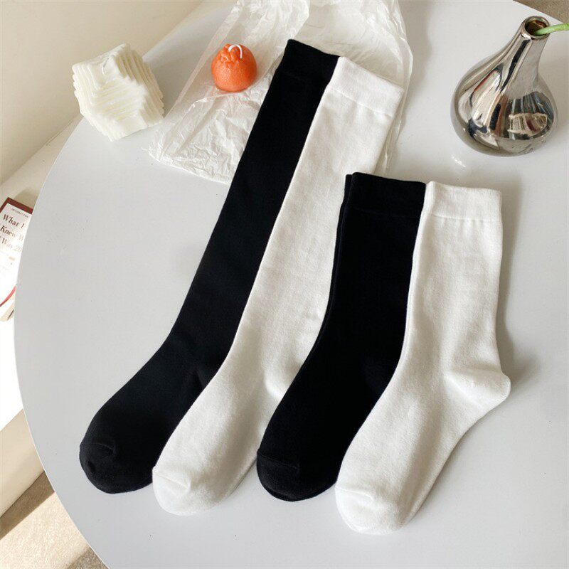 【3 пары】 Весна и осень средней трубки женские носки Черно-белые чулки в стиле колледжа Стильные цвета свайные носки JK Студенты спортивные носки