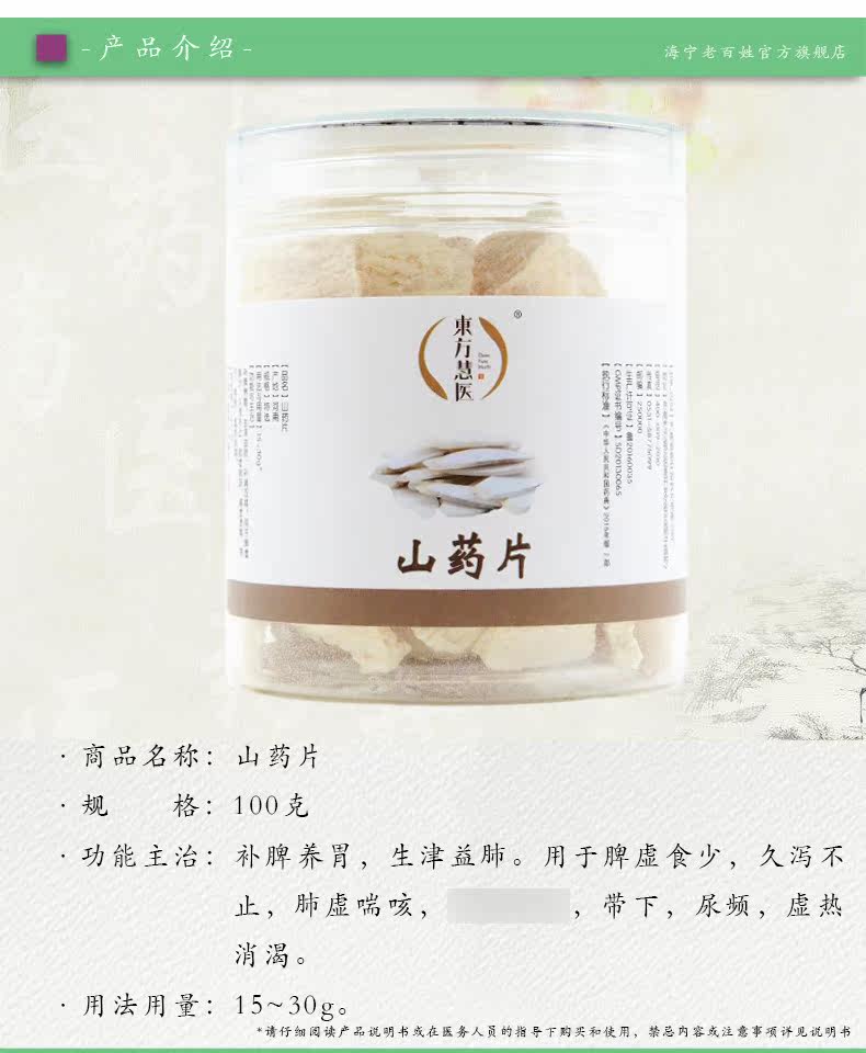 东方慧医 Yam Picxy 100g Tonic Spleen Fying и питает желудок и питает легкие
