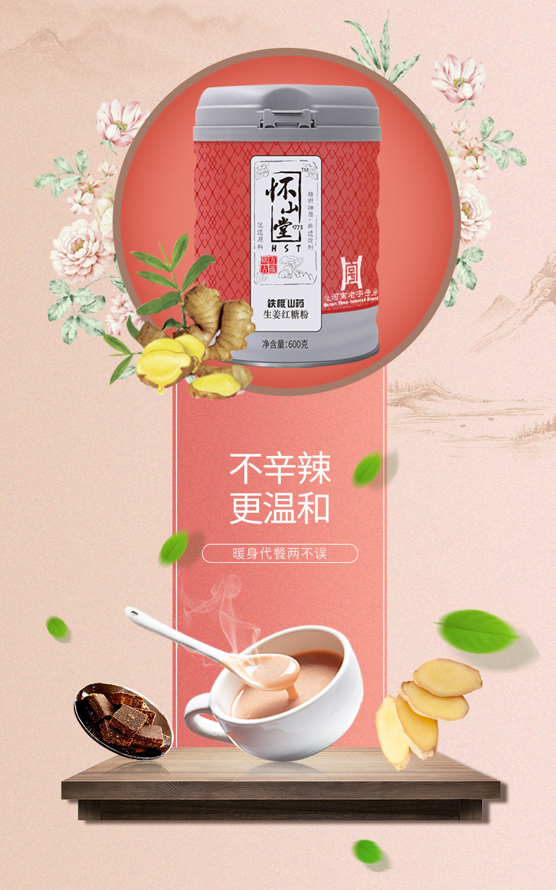怀山堂 Железная палка Yam, имбирь -коричневый сахарный порошок 600 г хуай имбирный чай Huai Горный порошок теплый напиток