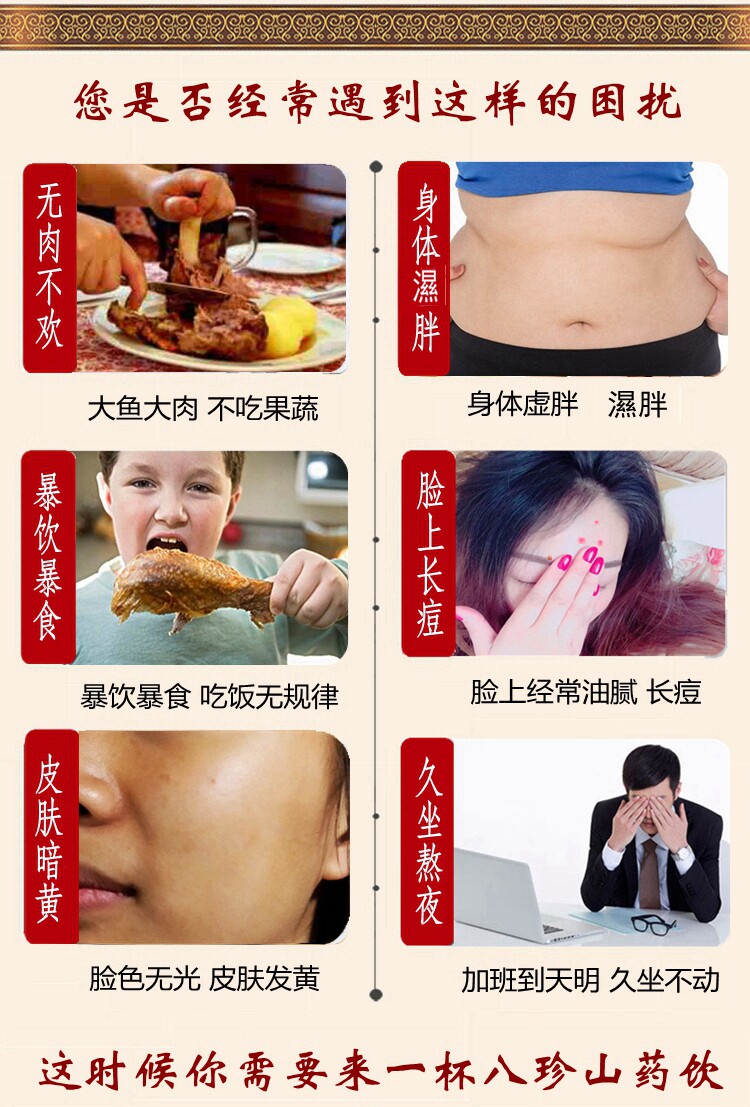 同仁堂 Bazhen Yamana Plus Poria Платформа Slanges Slanges Red Bean Debs Aversion Eight Zhen Powder Wet Sleen и Ald N7